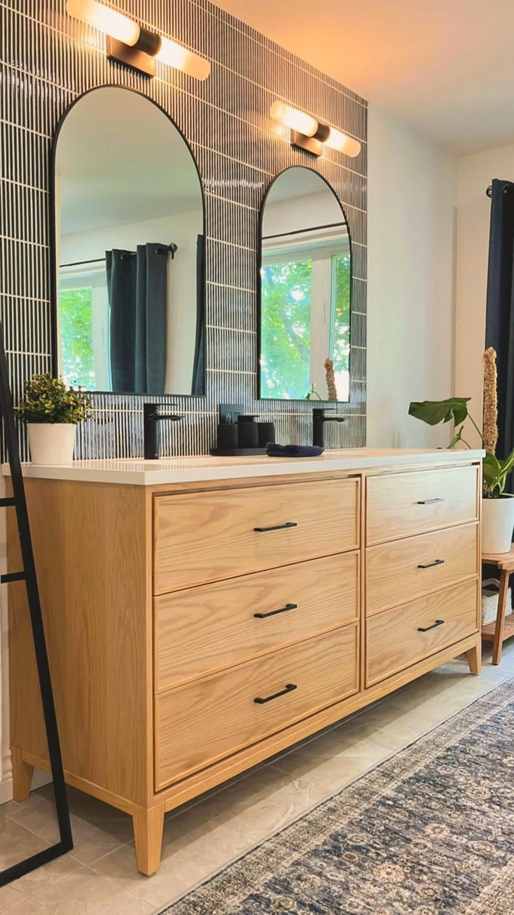 Pour cette suite des maîtres, nous avons relevé le défi d’intégrer style et fonctionnalité en harmonisant différents éléments existants, tout en insufflant une ambiance bord de mer contemporaine. La salle de bain se pare d’une élégante tuile murale bleu marine et d’une vanité en érable naturel, apportant lumière et texture. Dans la chambre, un mur de shiplap noir crée un effet de profondeur et de détente, tandis que le coin toilette et le walk-in repensé ajoutent un espace de rangement optimisé et un style épuré. Ce design allie douceur, intemporalité et raffinement pour un espace apaisant et sophistiqué.